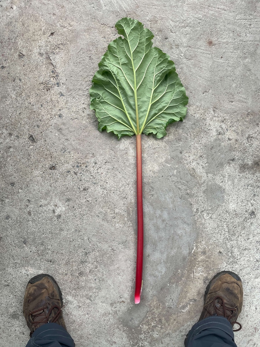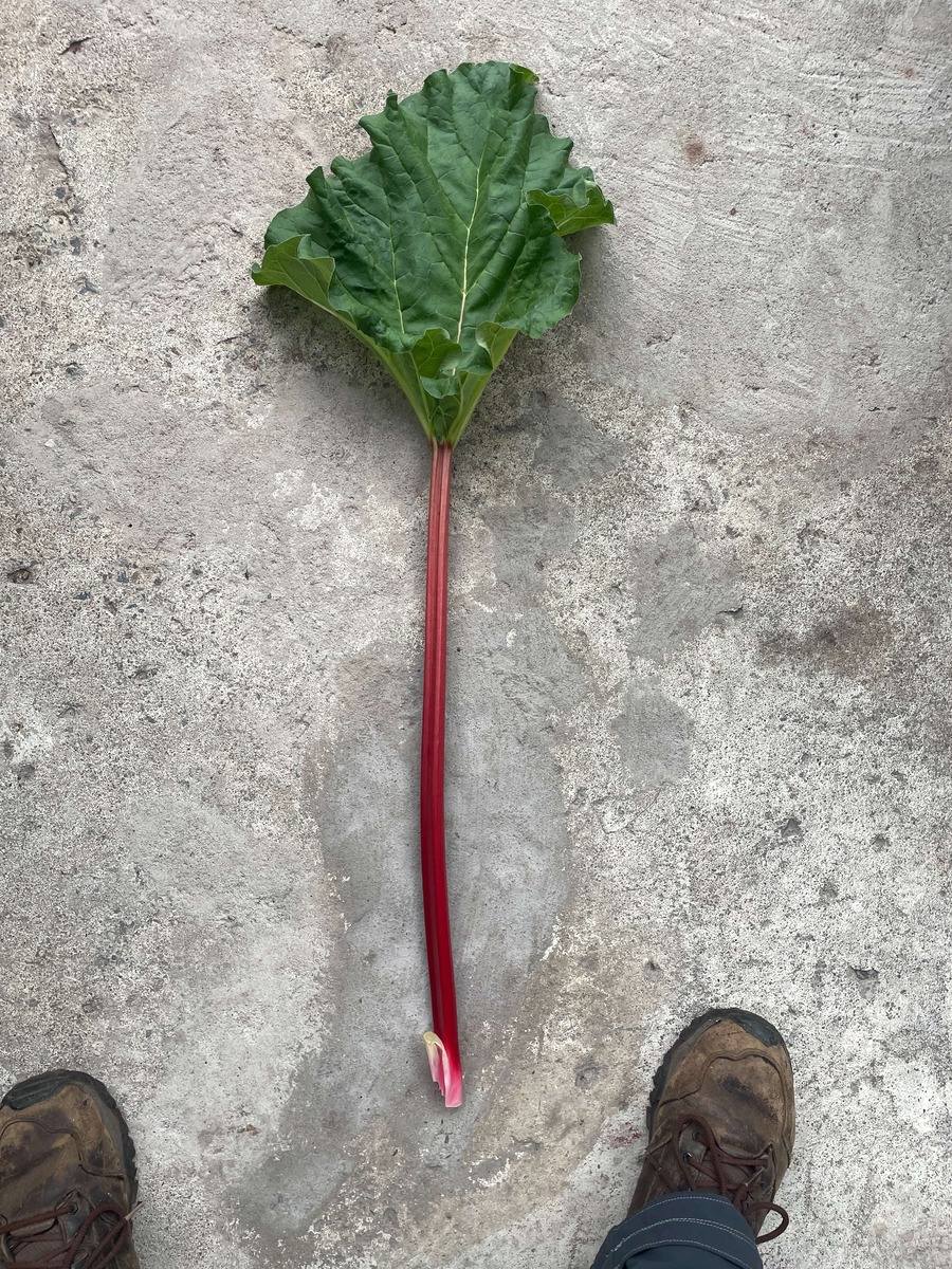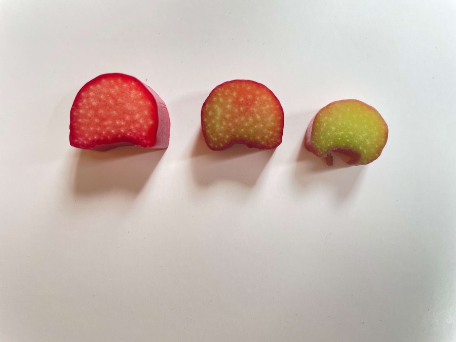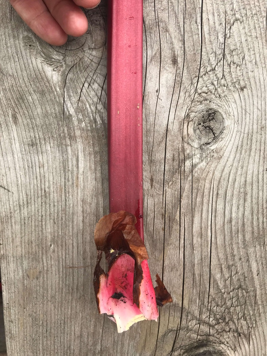 Green petioles, similar to Victoria but slightly more vigorous and more intensely colored, usually with a darker pink speckling on a green stem. Very strong stems suitable for juicing and winemaking.