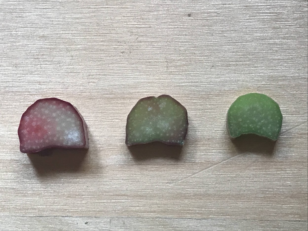 Petiole color : Bright pink to bright red sometimes a little green