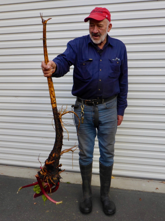 2024 — This rhubarb is an unusual, large growing, winter dormant, type. Extremely vigorous, picks easily, and is good eating. Grows incredibly fast from seed and can be picked 6 months from sowing. Leaves are pubescent in the spring. Not suitable for growing in pots once established.