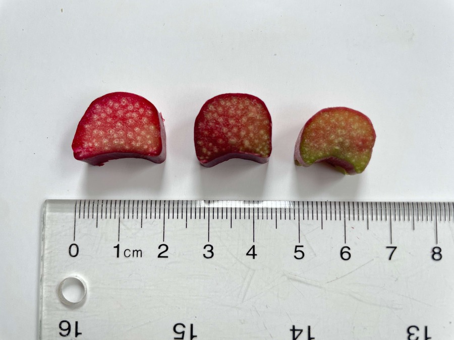 2023 — Deep red Historic variety grown for its classic rhubarb flavour. Colour resists fading when processed.