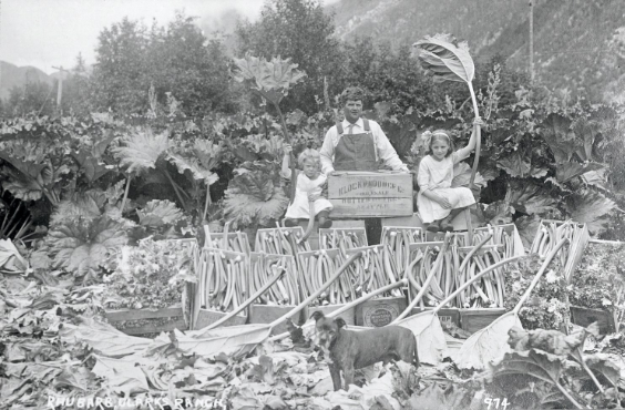 "Rhubarb King" Henry D. Clark et ses filles mettent en caisse la tige aigre à l'été 1914Henry D. Clark était connu comme le