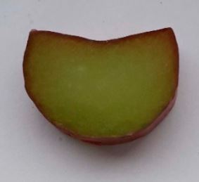 2021 — Erect attitude, type of cross-section 2, red ground color of skin, entire distribution of skin superimposed color at base, speckled distribution of skin superimposed color at middle, speckled distribution of skin superimposed color just below leaf blade, present hairiness just below leaf blade, weak ribbing of dorsal side, green color of flesh